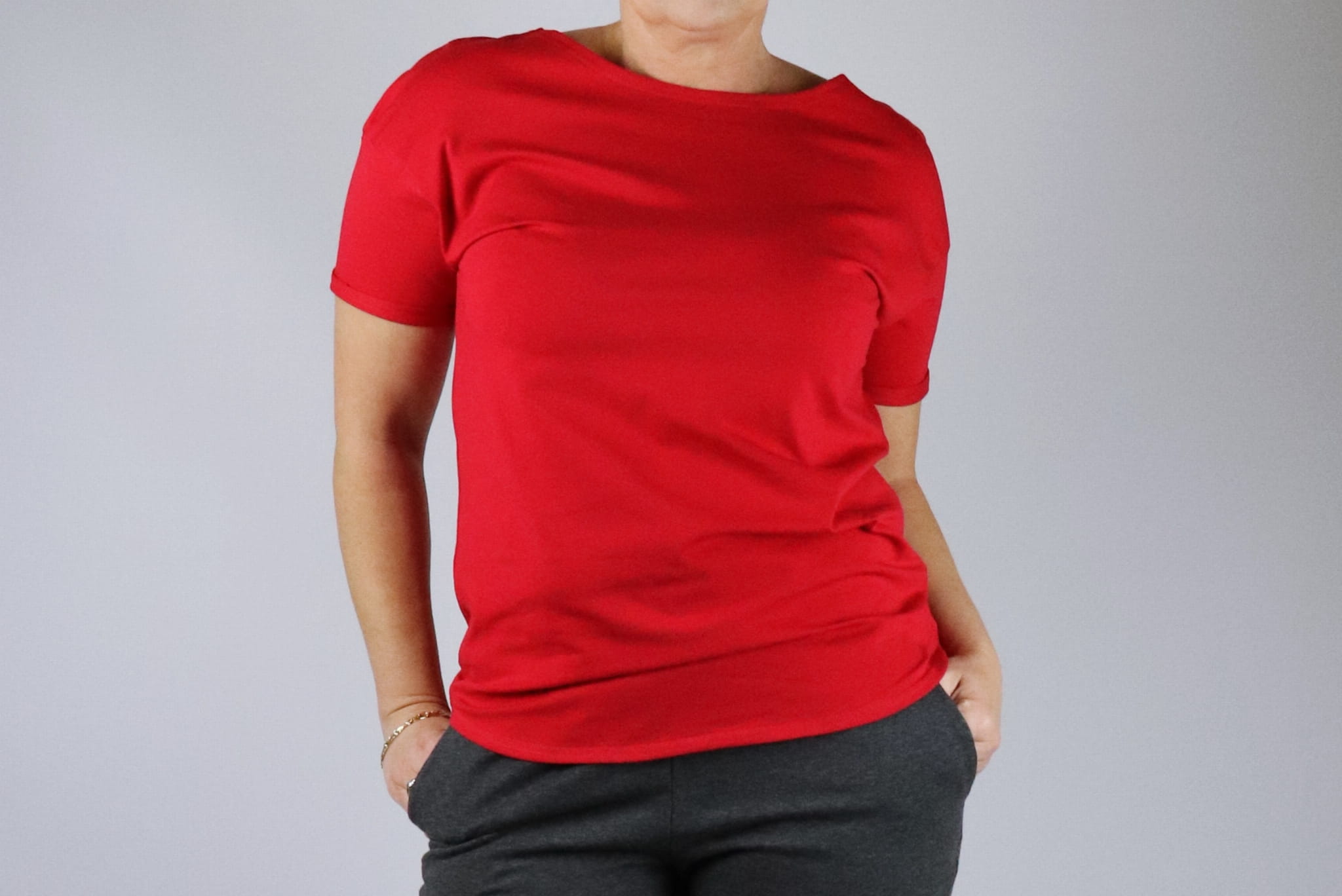 Materiał: 95% bawełna, 5% elastan (200g). Kolor czerwony.