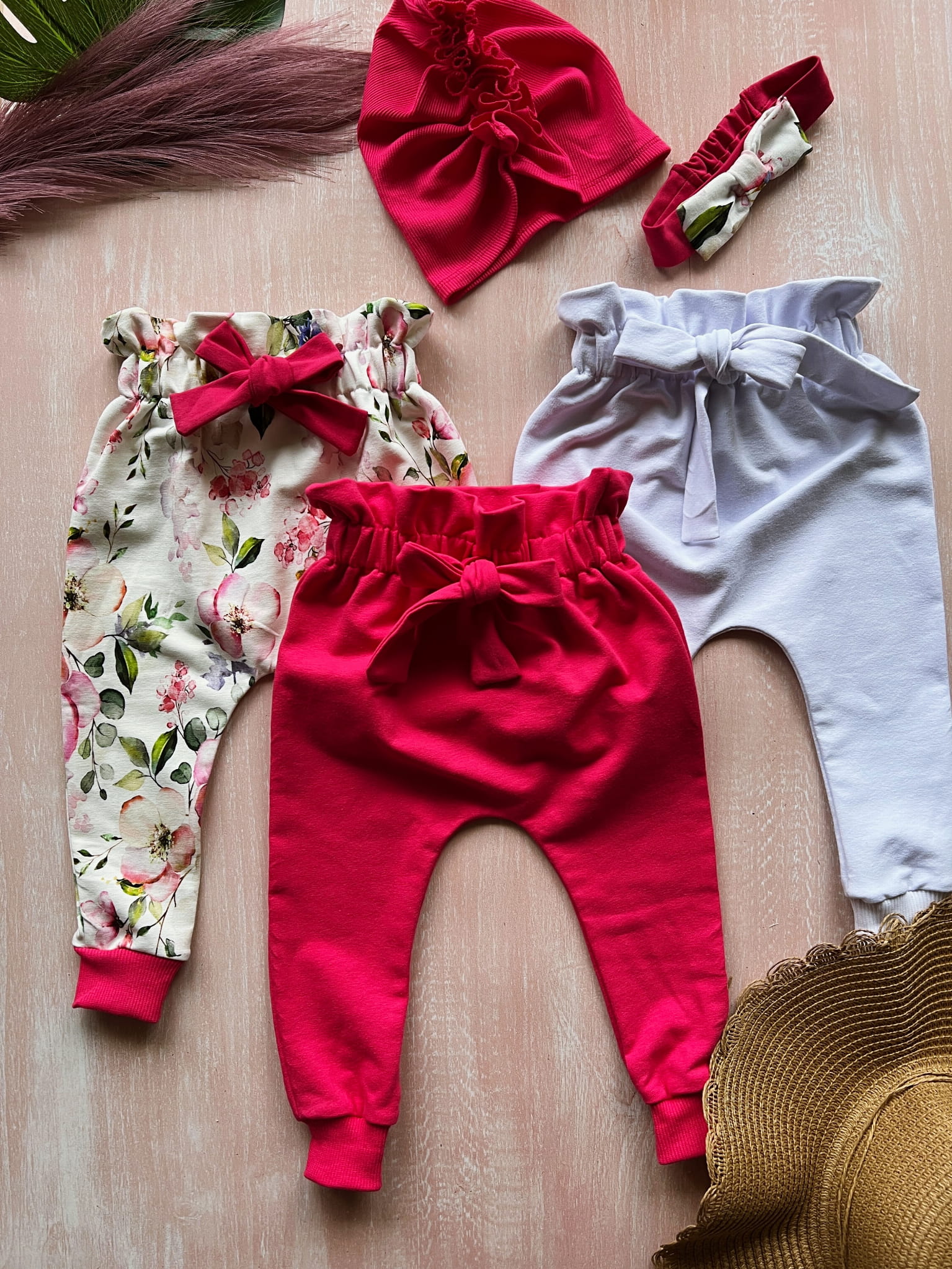 Śliczne spodnie dresowe dla dziewczynki z wiązaną kokardą i marszczoną gumą, starannie wykończone ściągaczem.