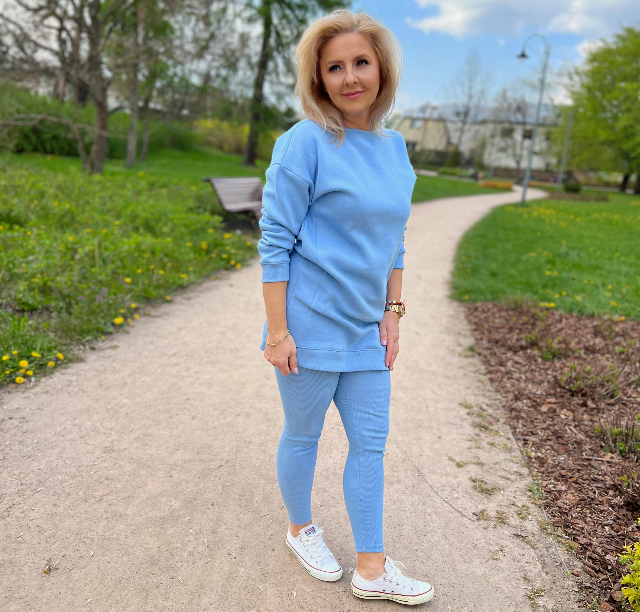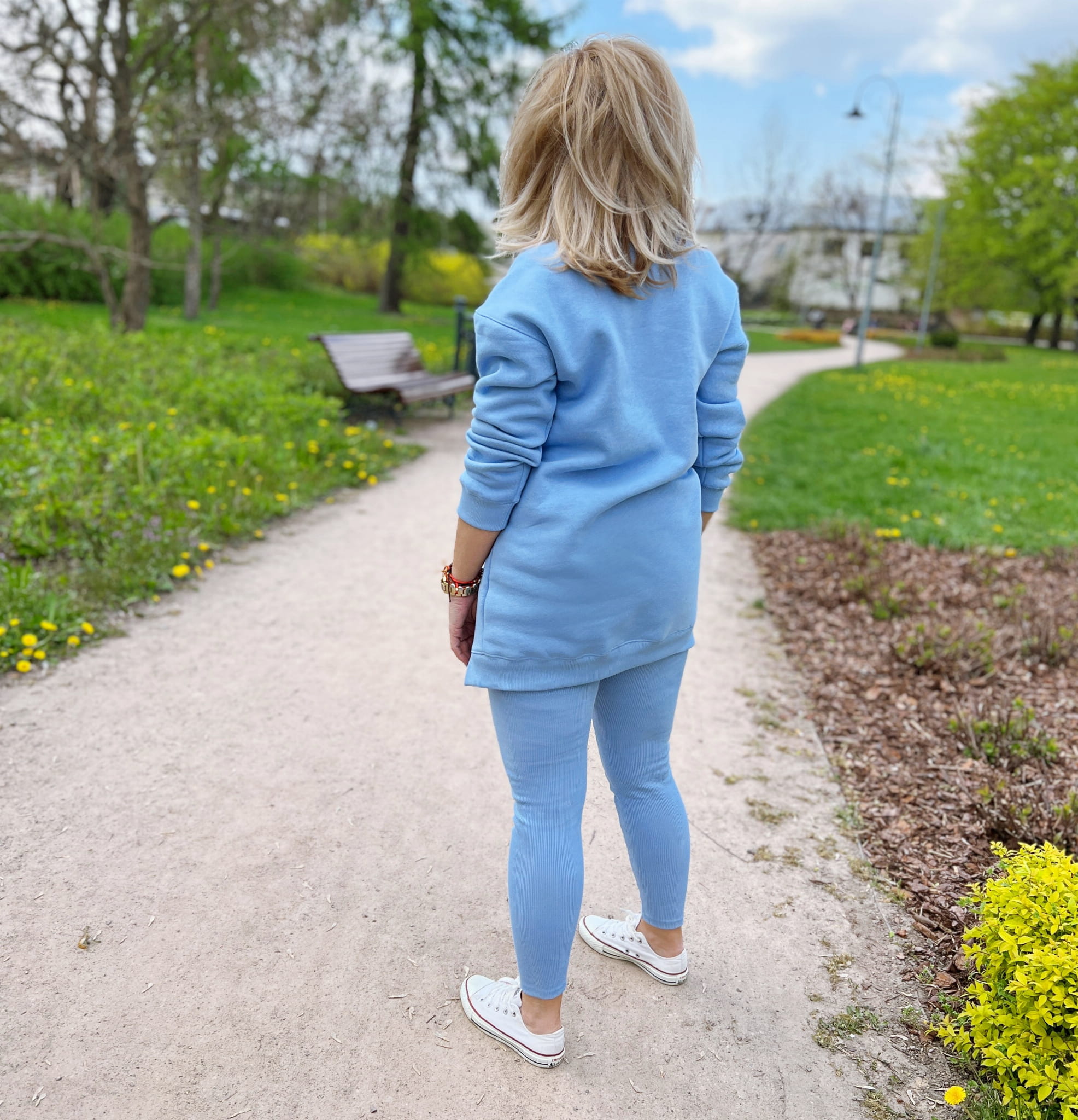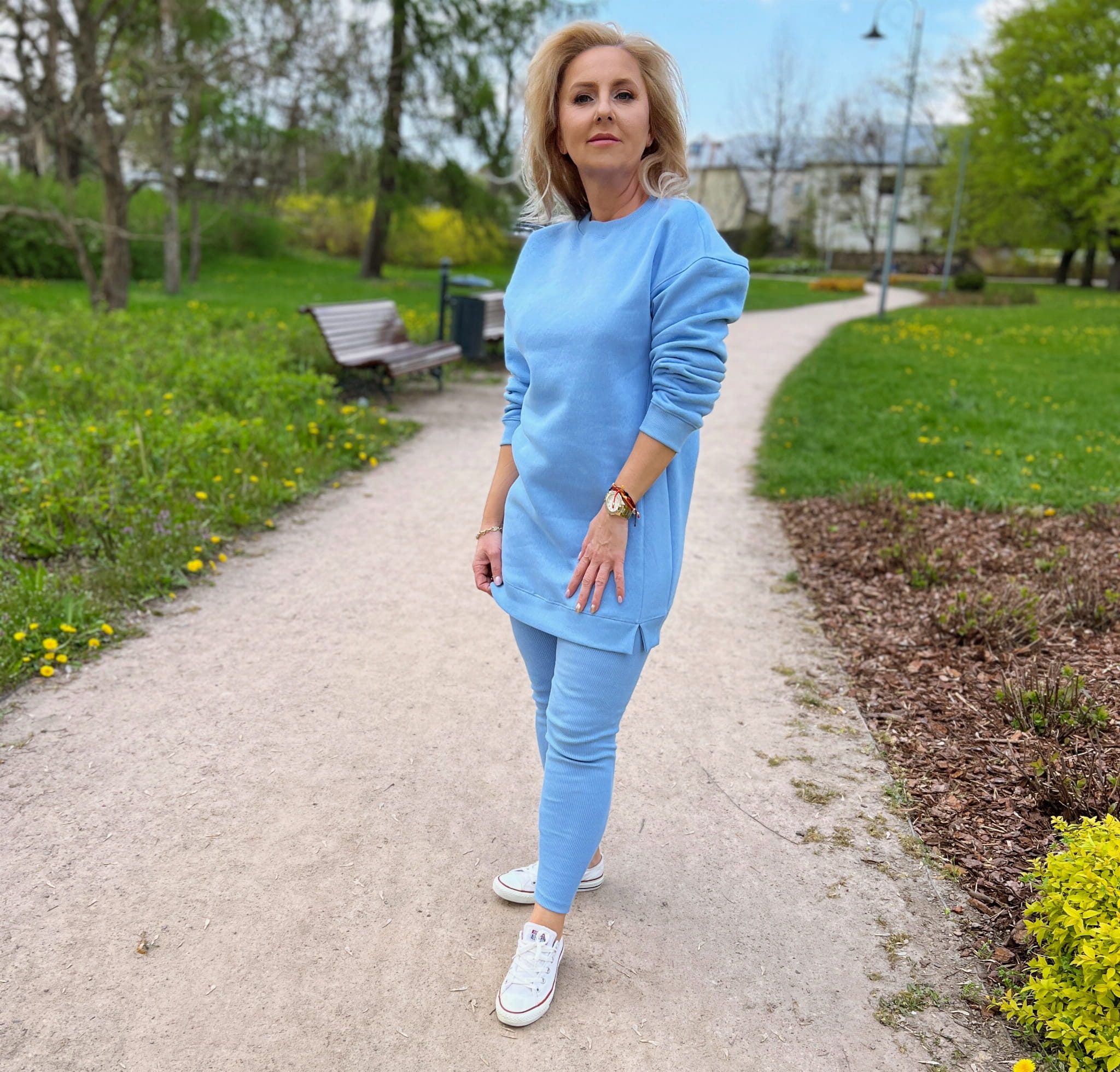 Materiał: 95% bawełna, 5% elastan (250g). Kolor niebieski.