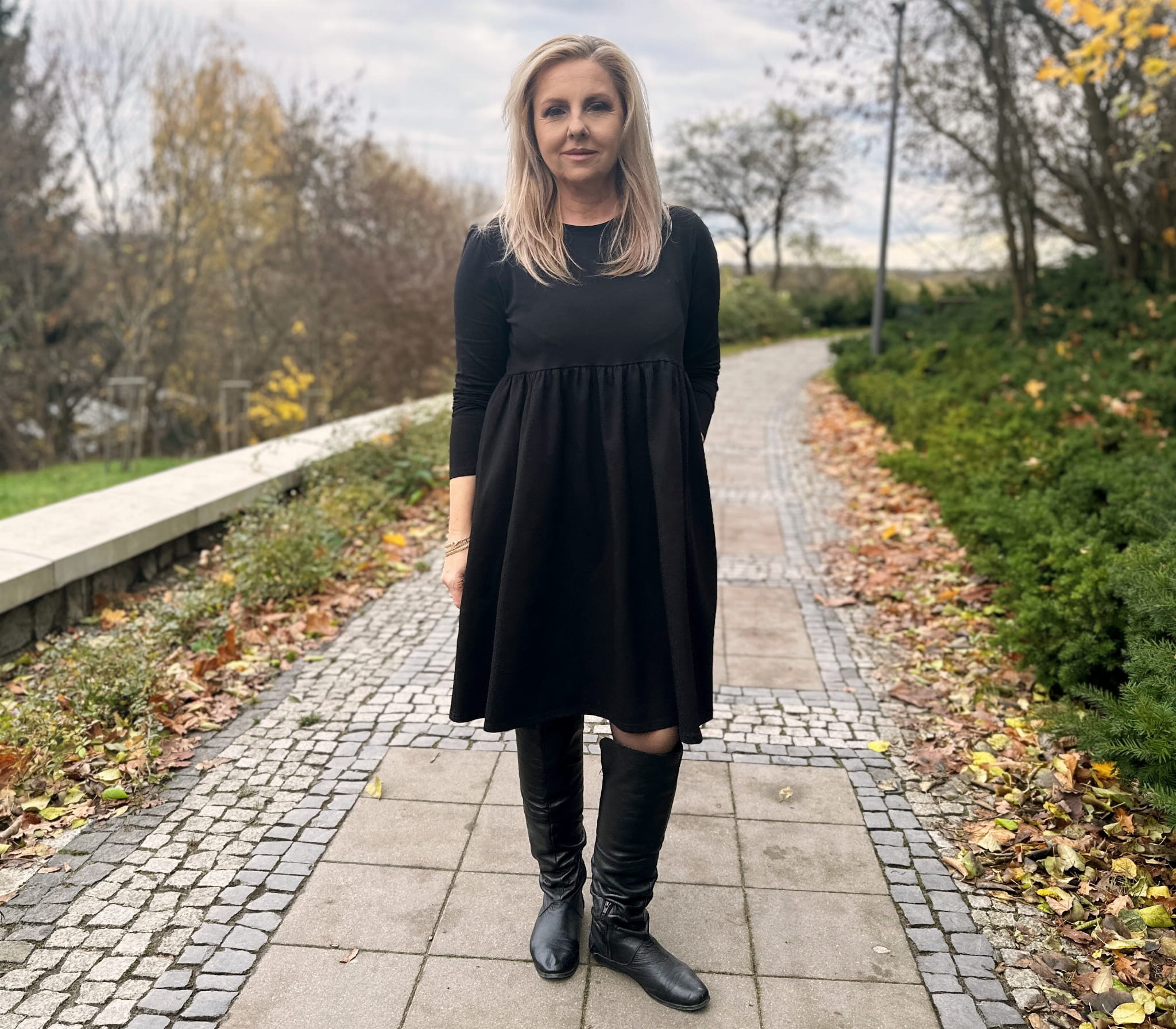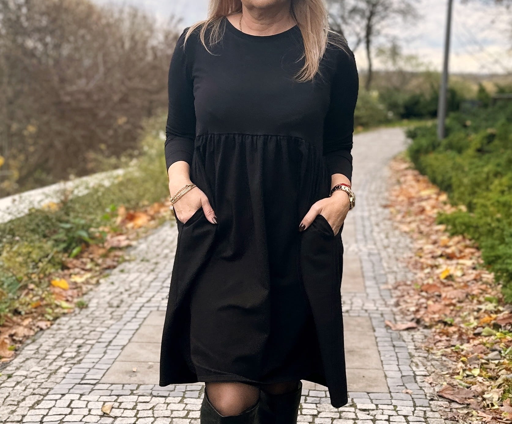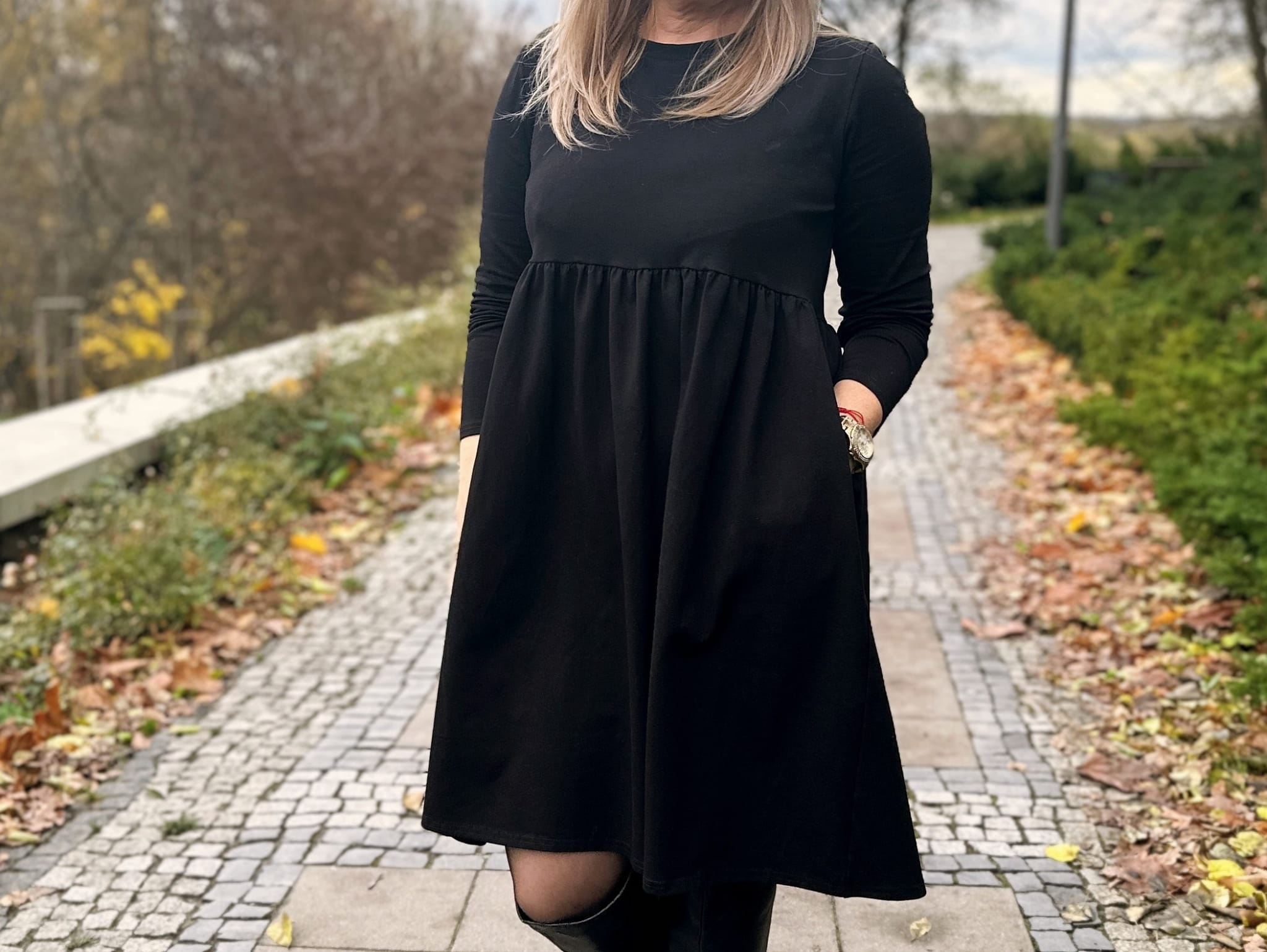 ELENA to niezwykle wygodna sukienka z długim rękawem w średniej długości. Posiada kieszenie oraz luźny, rozkloszowany dół. Elena została zaprojektowana z myślą o każdym rodzaju sylwetki. Jej uniwersalność, a zarazem unikatowość pasuje do każdej z nas. Szyta przez nas z dbałością o każdy szczegół z wysokogatunkowej dzianiny bawełnianej typu jersey. Materiał nie spiera się, nie odbarwia, nie mechaci, nie zmienia swojej formy po praniu, ani nie odkształca. Wybierając nasze produkty, dokonujesz zakupu na lata.